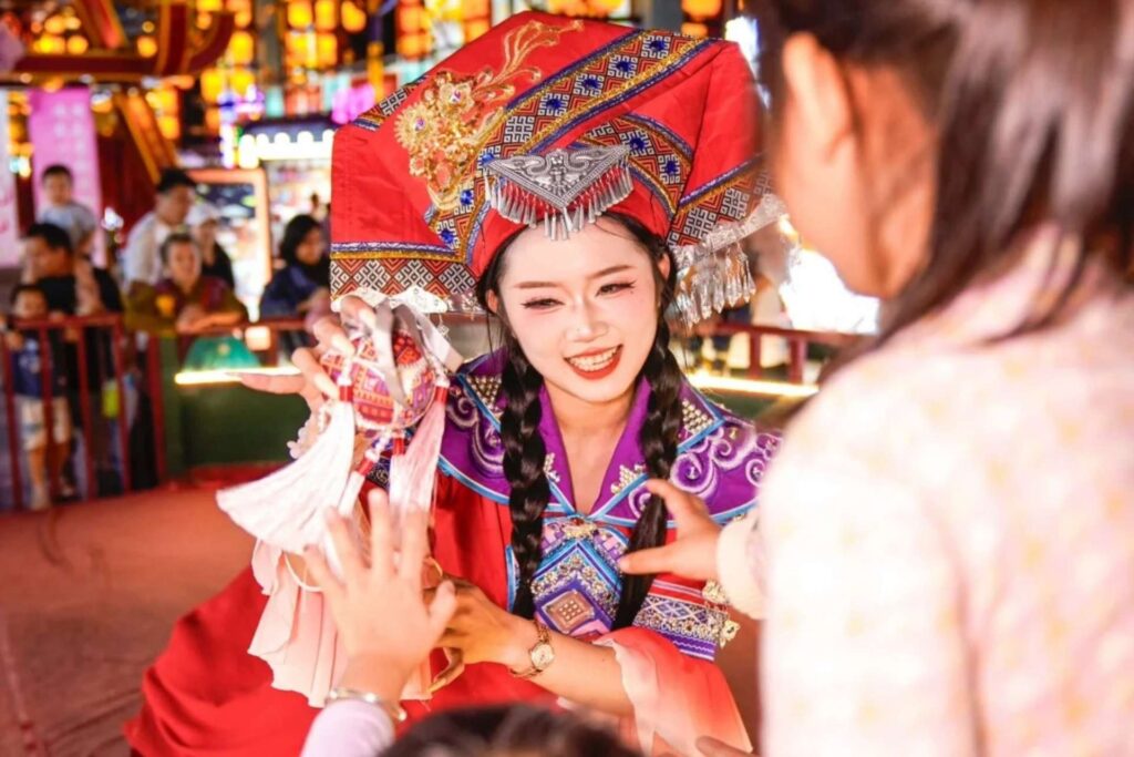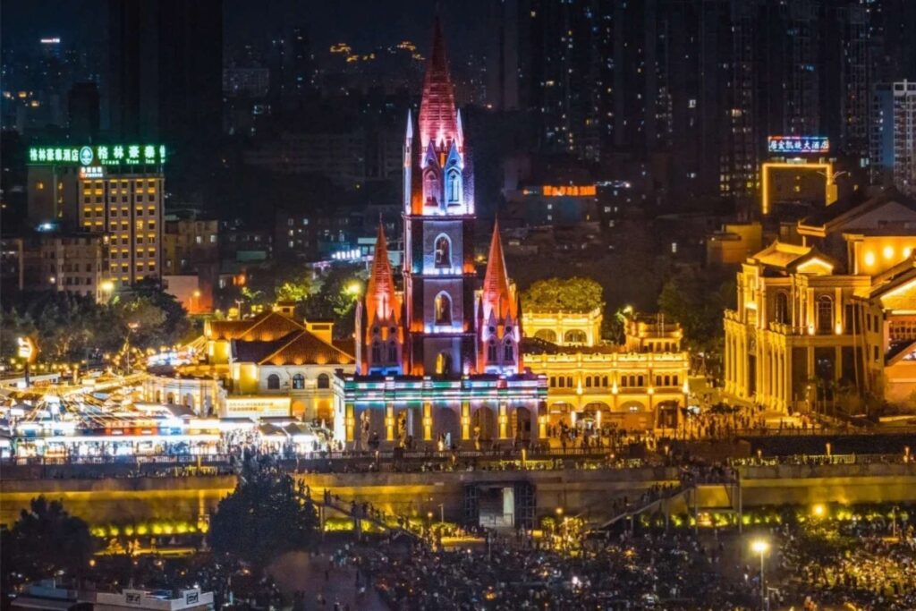 • 17h30: xe đưa đoàn đến khu phố Nam Ninh Chi Dạ – Nanning Everbright City. Quý khách thưởng ngoạn “Nam Ninh Chi Dạ”khu vui chơi và con phố ẩm thực nổi tiếng của Quảng Tây. Quý khách có thể xem các tiết mục biểu diễn dân tộc tại các sân khấu công cộng trải dài trên phố, thưởng thức các món ăn vặt đặc sắc của Quảng Tây và các vùng miền khác như phở ốc cay Liễu Châu, bánh bao Thiên Tân, thịt nướng Mông Cổ, gà nướng Hàn Quốc, bánh bay Ấn Độ …,  Tự do bữa tối (với bữa ăn tự chọn và chi phí tự túc)
